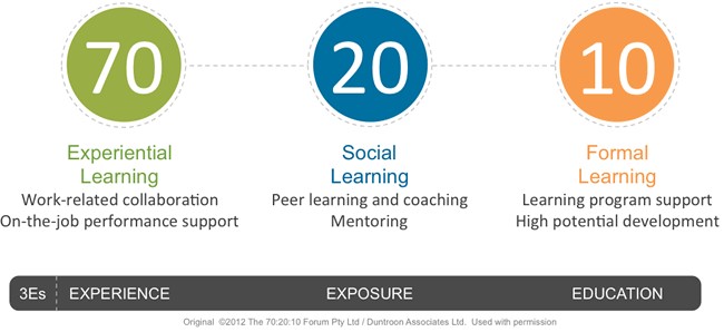 70% Experiential Learning – Learning and developing through day to day tasks, challenges and practices.